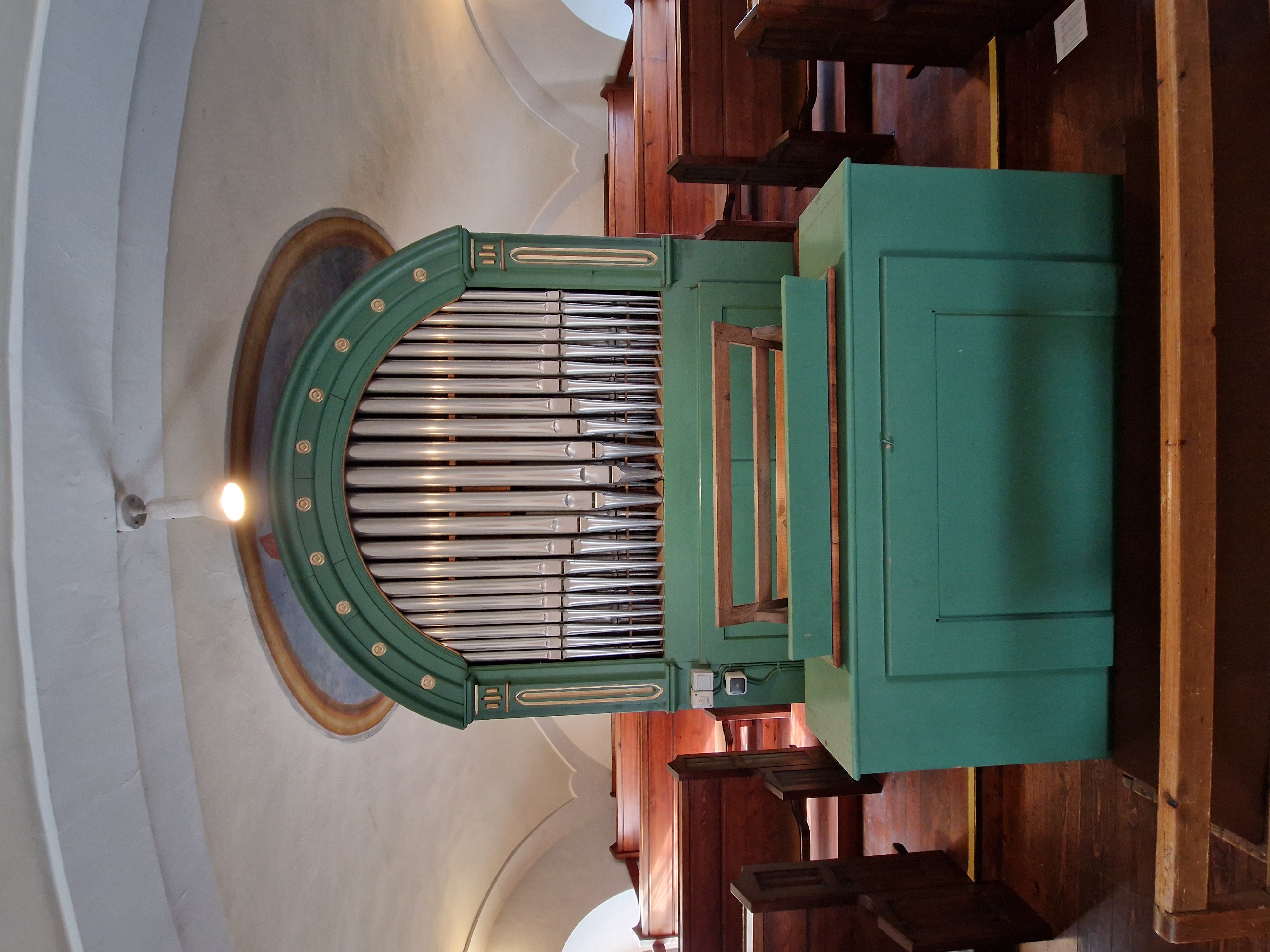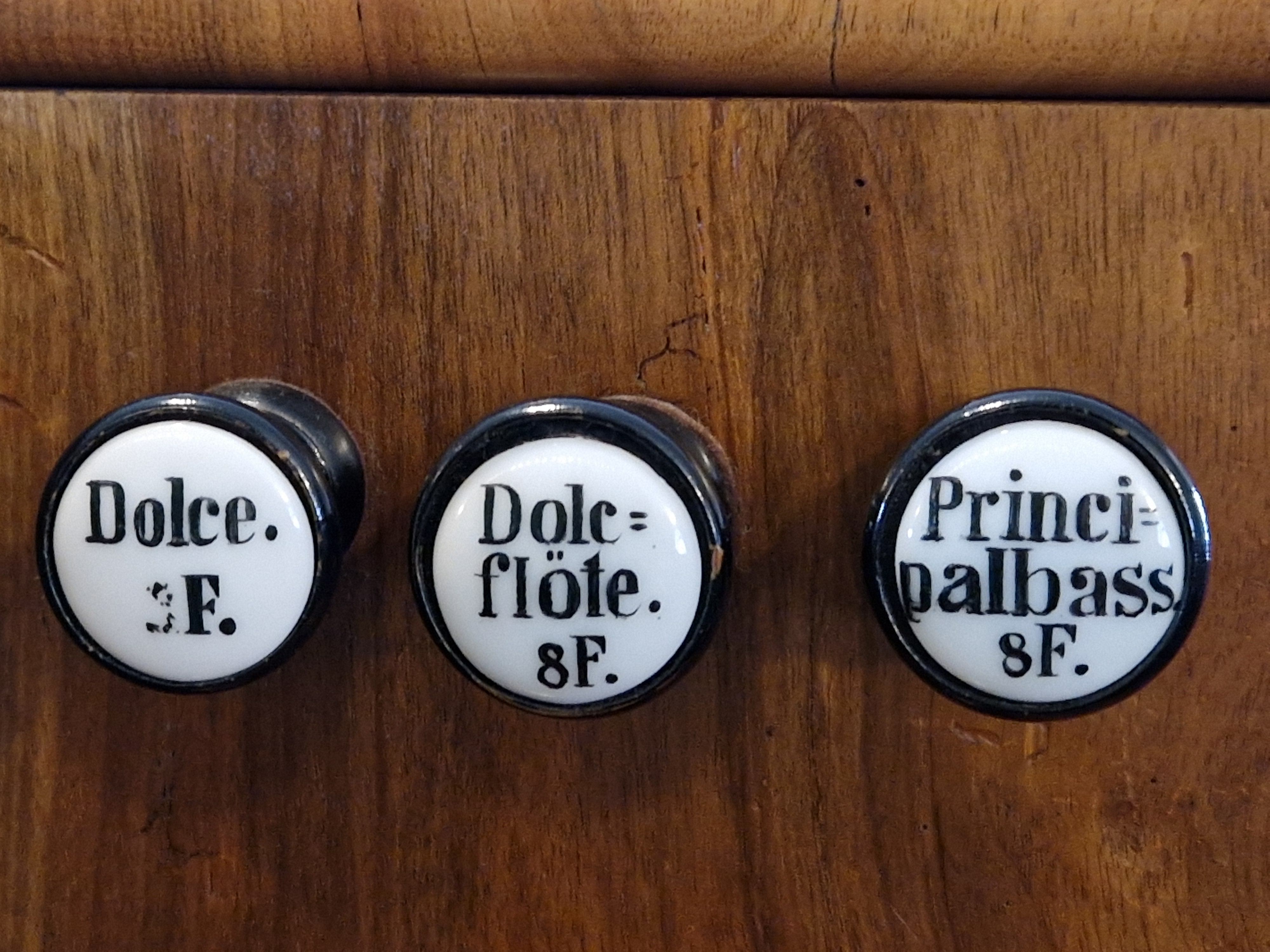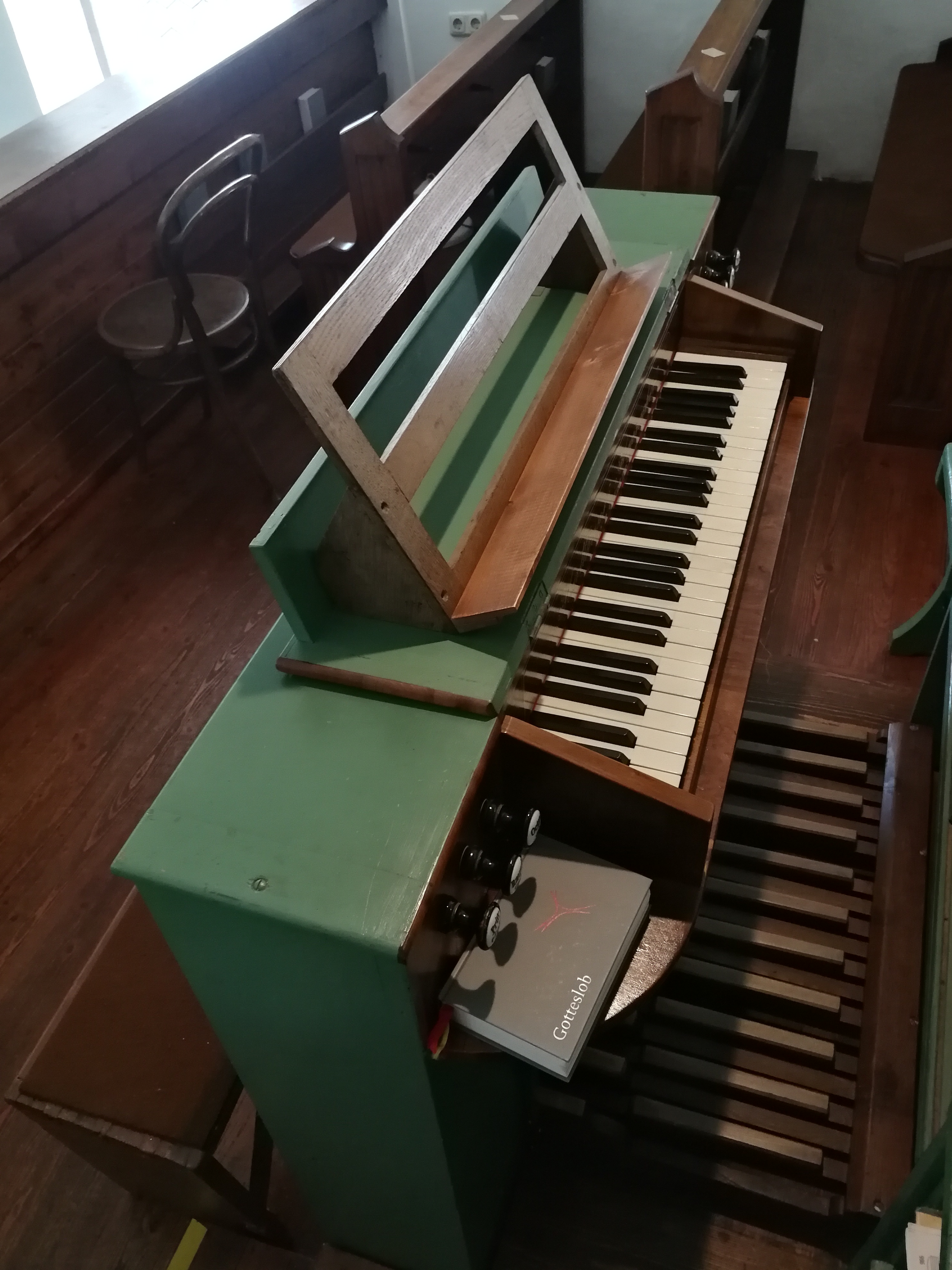 Einschalter unter Lichtschalter, rechts vom Spieltisch (aus Sicht des Organisten)