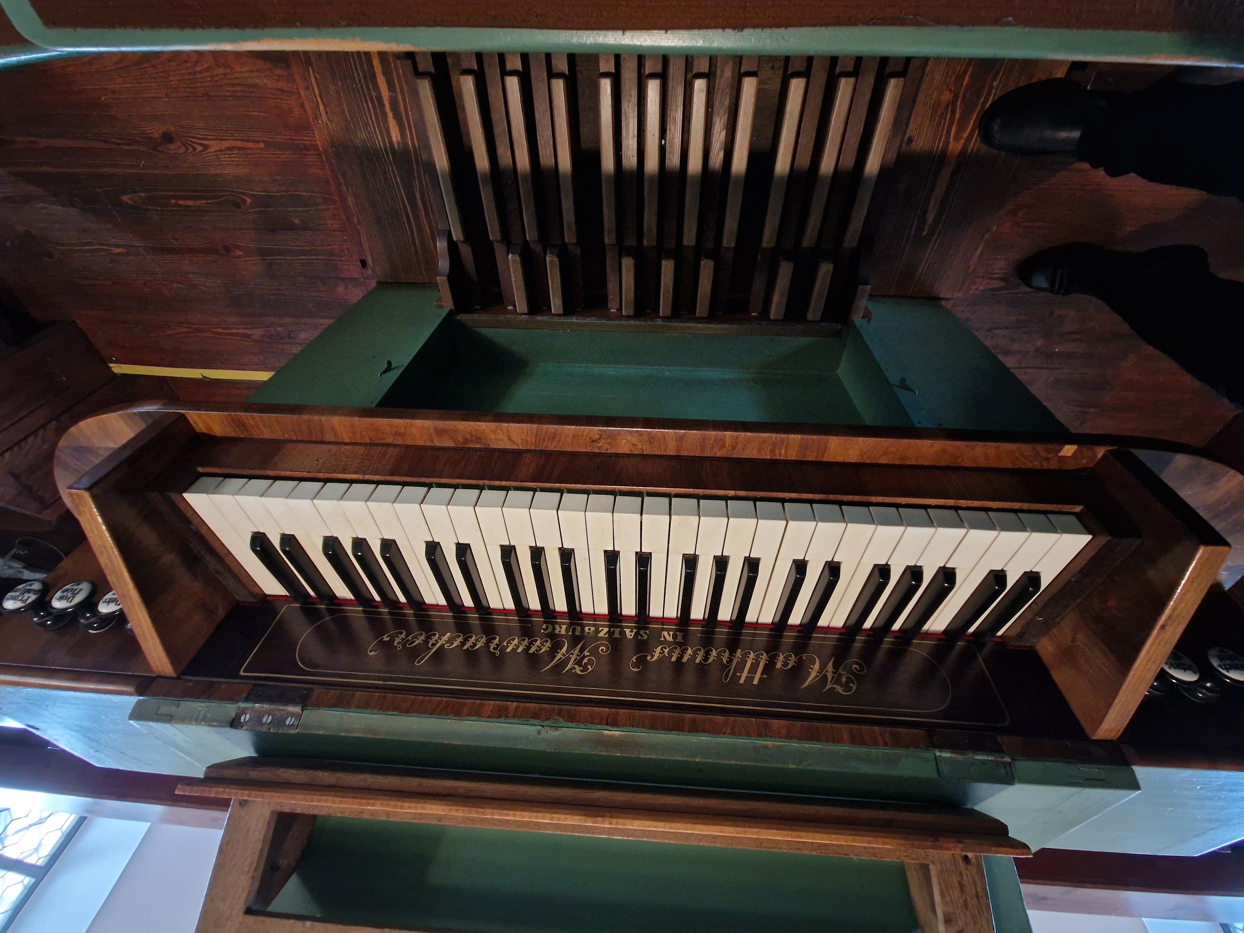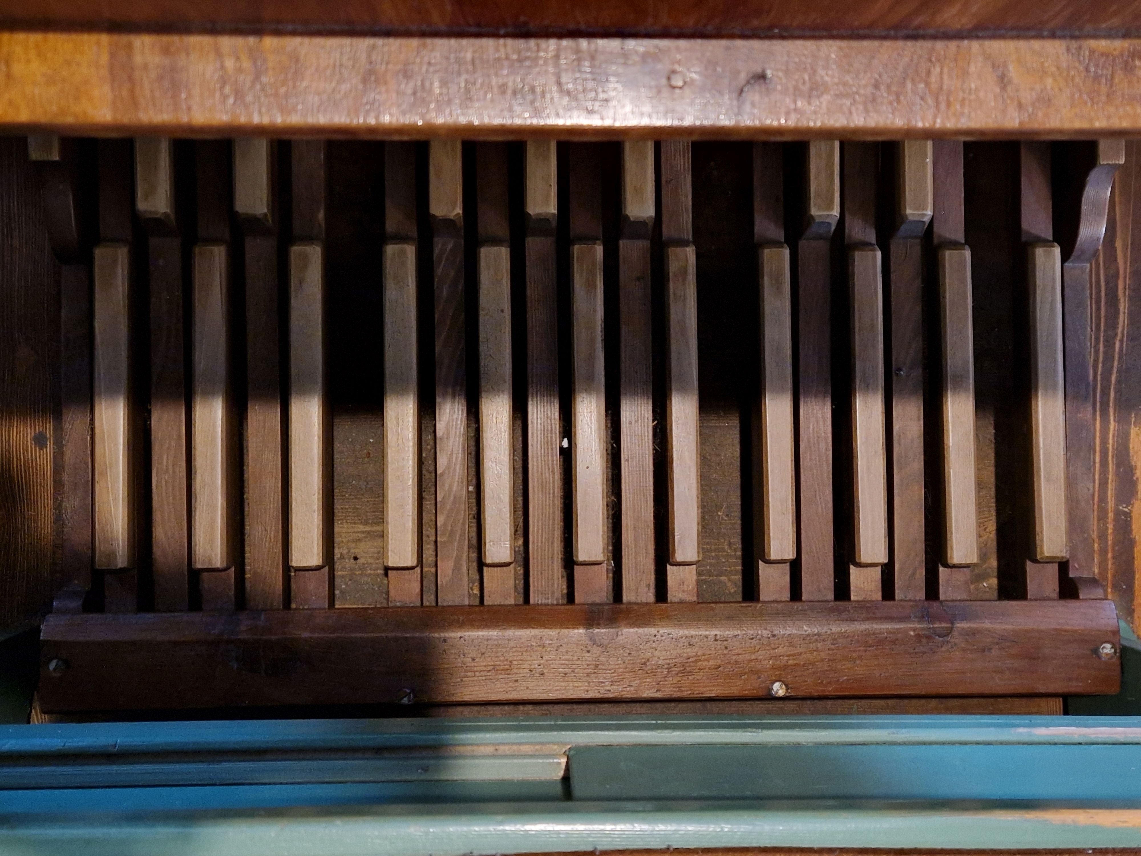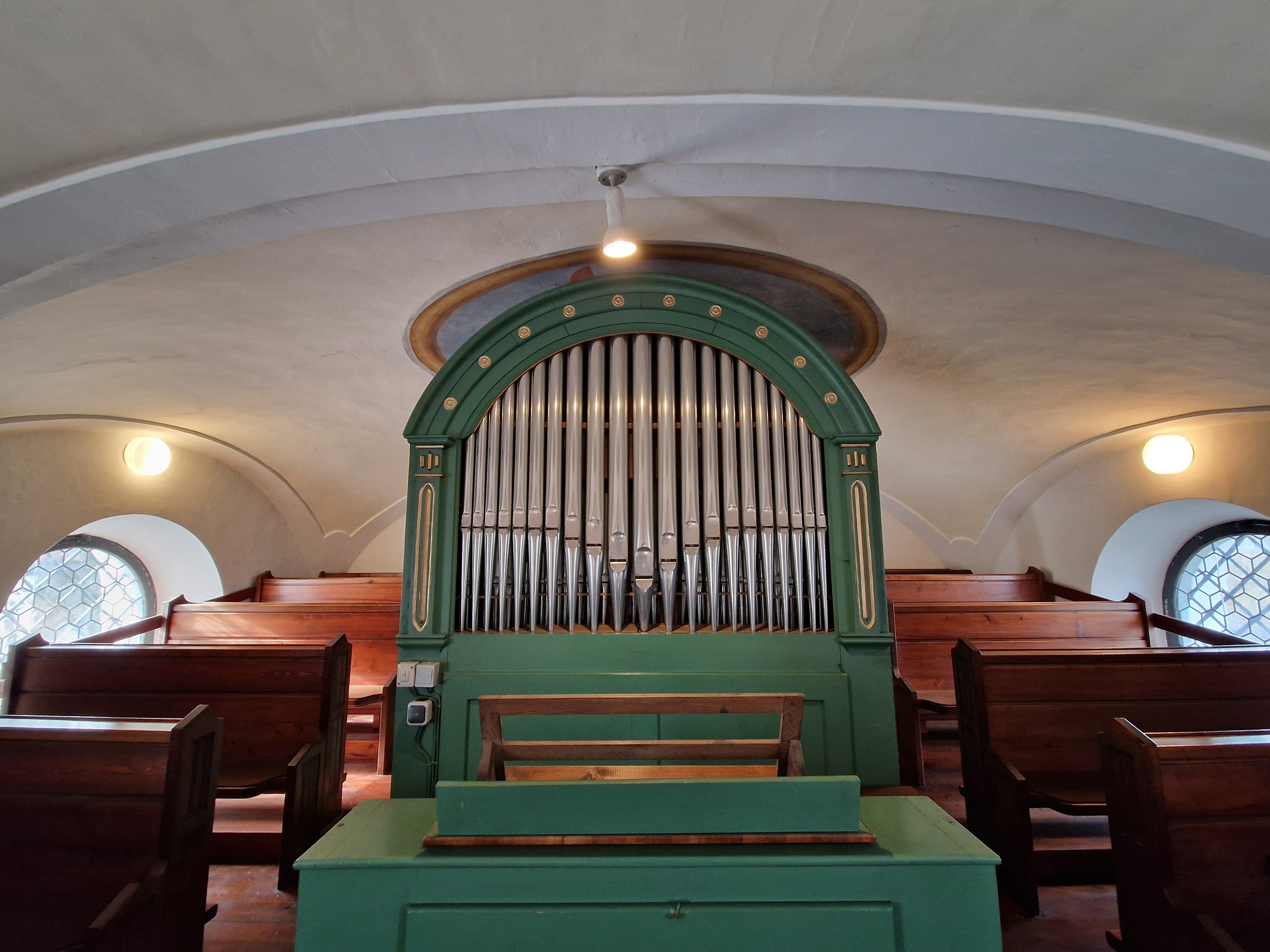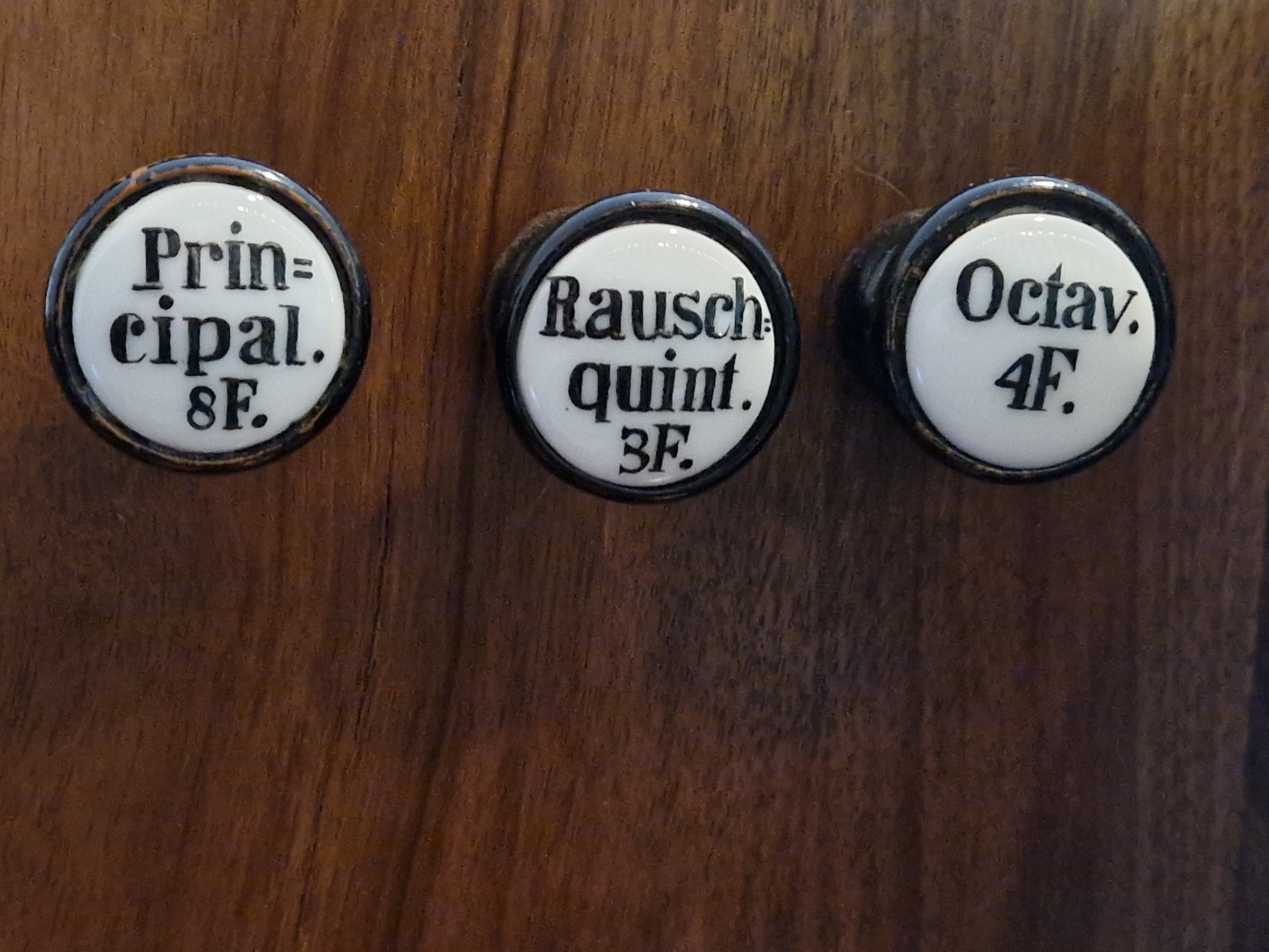 Einschalter unter Lichtschalter, rechts vom Spieltisch (aus Sicht des Organisten)